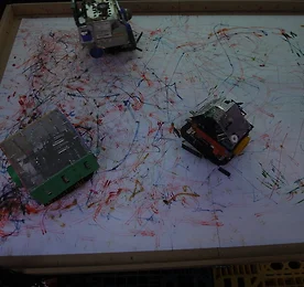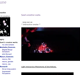 나무가 피운 꽃/작업들 /project 썸네일형 리스트형 creative works -Light interactive Pheromone * Interactive creater * Light interactive Pheromone of Ant Robots. 한땀한땀 전부 나의 손으로 제작된 개미를 모방한 로봇들과 붉은 빛을 뿜어내는 라이트페로몬 LED Table.서로의 신호에 반응하면서 움직이는 로봇집단의 알고리즘과 라이트페로몬의 알고리즘이 서로 상호작용하도록 구현하였다. 움직이는 물체는 힘이있다. 미디어라는 통합적인 용어를 사용하여 표현하는 오늘날. 움직이는 미디어의 힘은 강력하다고 생각하기에 시작한 논문 작업이었다. 엄청난 개수의 라이팅 센서 모듈을 제작하고 납땜해야 했기에 잠을 잘 수 있는 시간은 하루에 고작 두어시간 뿐. 그래도 실험하고 만들면서 자식을 잉태하는 기분이랄까. 로봇들이 서로 반응하면서, 또한 로봇이 지나다니는 바닥의 .. 더보기 구글 사이트 도구 오픈! 티스토리가 편리하긴 하지만~ ! 요즘엔 구글 사이트도구로 만든 사이트가 너무 깔끔해서 좋아졌다~ ** 나의 구글 사이트 링크 : http://sites.google.com/site/sune0720/ 단정한 화이트에 텍스트기반의 레이아웃. 글의 내용에 더욱 집중하게 되는 효과가 있어 글에 신경을 더 써야할 것 같은 부담이 든다. 그래도 홈은 역시 나의 사랑하는 아이들 롸보트~! ^^ 더보기 2010. 인사아트센터 interface: surface * 2010년 제작했던 홀로그램 디스플레이. * 작품제목: Floating / 인터렉티브 홀로그래픽 디스플레이 * 개발 툴: Visual studio 2008, openFrameworks * 작품설명: 이 작업은, 홀로그래픽영상의 입체를 평면적으로 분해한 작업이라고 할 수 있다. 조각난 가상의 영상들은 작가가 입체적 영상을 위해 제작한 디스플레이 안에서 3차원의 다른 공간을 만들어낸다. 관람객은 자신이 있는 공간에서 낯선 영상들의 입체감과 마주면서 계속해서 3차원의 영상을 생성해내는 창조자가 된다. 이렇게 만들어진 깊이감 있는 영상조각들은 미리 연출된 현란한 3D가 아닌 예견되지 않은 불완전한 입체형식으로 우리에게 3D 영상에 대한 다른 시각과 실제와는 다른 입체적 조형성을 재해석하여 보여준다. 더보기 2009_서울디자인페스티벌 CINE de CHEF/CJ CGV (2009,12,2~6) 2009서울 디자인페스티벌에 CINE de CHEF 프로모션 전시부스를 맡아 진행하게되었다. ** 서울디자인페스티벌을 위한 부스 디자인 CINE de CHEF/CJ CGV 기본적인 컨셉은 인터렉티브영상작업을 보여주는 스크린벽을 개인적인 관객을 위해 사방에 배치하는 것으로 하고사방의 카메라가 관객의 이미지를 잡아낼수 있도록하는 구조로 디자인하였다. 아래의 두 컷은 디자인한 도면의 스크린에 인터렉티브작업 영상을 맵핑한 이미지이다. 관객의 부스의 중앙에 와서 앉았을 때의 상황을 시뮬레이션 할 수 있다. ** Interactive image design for CINE de CHEF/CJ CGV cine de chef의 부스에 들어갈 인터렉티브 영상 작업의 모티브로 cine de chef를 상징 할 만한 이미지.. 더보기 전기달린 드로잉 _ with 따뜻한 미디어공장(factory36.5) 전기달린 드로잉 프로젝트 _ with 따뜻한 미디어공장( factory36.5 ) 2009. 11월6~8일 . 서교예술실험센터_ 홍대 유랑마켓 * 레오넬 무라의 페인팅로봇을 알고난 후... 그때 부터 줄곧 드로잉을 하는 몇백개의 로봇작업을 계획하고 있었다. 한참 로봇 떼 에 빠져서 드로잉로봇을 잊어가고 있던 즈음에 좋은 기회로 좋은 뜻을 가진 사람들과 함께 해볼수 있게 되었다. 전기달린 드로잉은 일상생활에서 쉽게 볼수있는 고장난 전자제품들을 모아 새로이 디자인하여 예술활동을 하는 로봇으로 재탄생시키는 프로젝트이다. 이 프로젝트에서 내가 맡은 역할은 로봇의 기초가 되는 기본 뼈대인 모듈과 랜덤 드로잉을 하도록 각각의 로봇을 제어하는 것,벽과 동료를 피하는 센서부분이다. 로봇의 모듈을 만드는 작업은 어렵지.. 더보기 피카소 프로젝트 2 _2009 SPRING (Tool: Visual Studio C++, Openframeworks, OpenCV, logitech cam) 피카소 프로젝트 2 _2009 SPRING (Tool: Visual Studio C++, openframeworks, opencv, logitech cam) Color Segmentation 를 이용한 이미지 분할 작업. 노트북에서 camstudio로 화면 캡쳐한 영상이다. 처음의 영상과 두번째 영상은 color의 depth를 차이를 주어 화면의 분할이 다른 공간의 깊이를 만든다. 우리가 보는 촬영된 영상은 실제로 3차원의 영상이 아닌, 카메라가 보는 것을 다시 화면의 평면으로 옮겨진이다. 조각난 가상의 영상들이 화면안에 그들만의 다른 공간을 만들어내는 작업이다. * 동영상 (다음번 업데이트 때 vimeo로 올릴 예정) 더보기 피카소 프로젝트 2_ inverse version _ 2009.SPRING 피카소 프로젝트 2_ inverse version (Tool: Visual Studio C++, Openframeworks,OpenCV, Logitech cam) Color Segmentation을 이용하여 화면의 공간을 재구성하는 이작업의 큰 수확은 바로 이 영상이다. Segmentation들의 각 layer들를 inverse하자, 조각의 떨어진 틈이 생기면서 예상치 못한 영상이 나왔다. Computing art의 묘미란.. 바로 이런 것이 아닐까.. 하는 생각이 든다. 작업하는 사람의 머리로 이미지를 계산할 수 없는, 또한 그 이미지를 찾아내기 힘든, 보기 힘든, 어쩌면 우연의(프로그램은 철저한 계산에 의해 처리한 것이므로 우연이라 할 수 있을까..?) 결과물이 만족할 만한 결과를 낼 때, 그 때야 .. 더보기 self_affine 2008_WINT